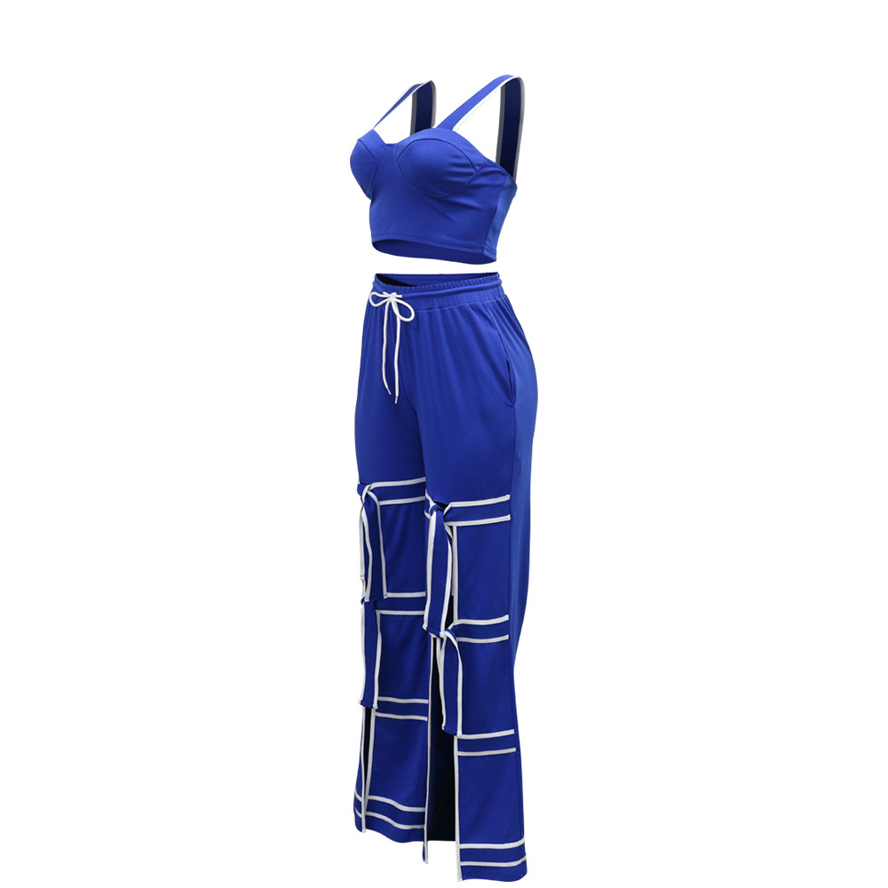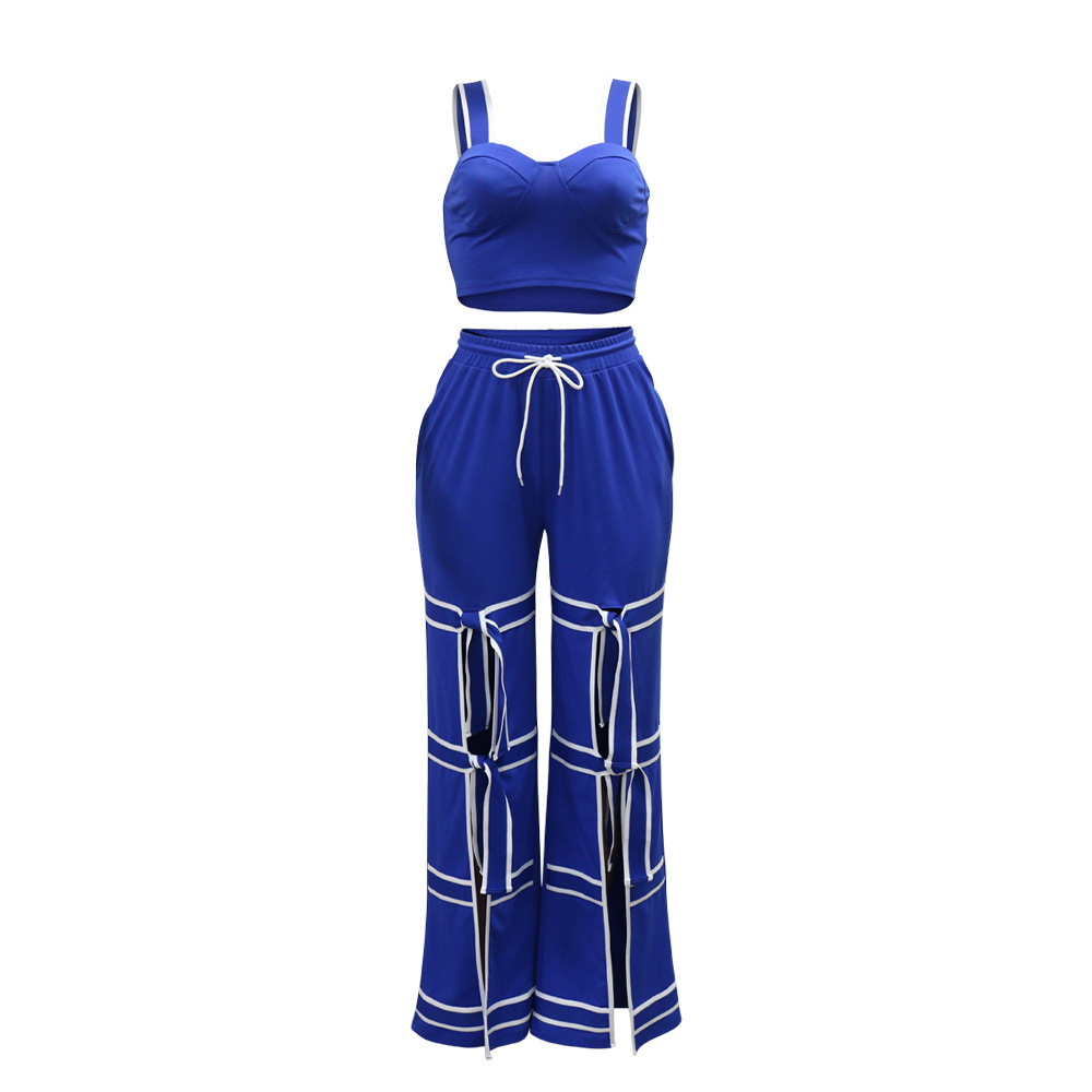 Turn heads in this effortlessly stylish two-piece set featuring a flattering strap top and flowy wide-leg pants with lace-up detail. Perfect for brunch, beach days, or nights out – comfort and style in one chic fit.