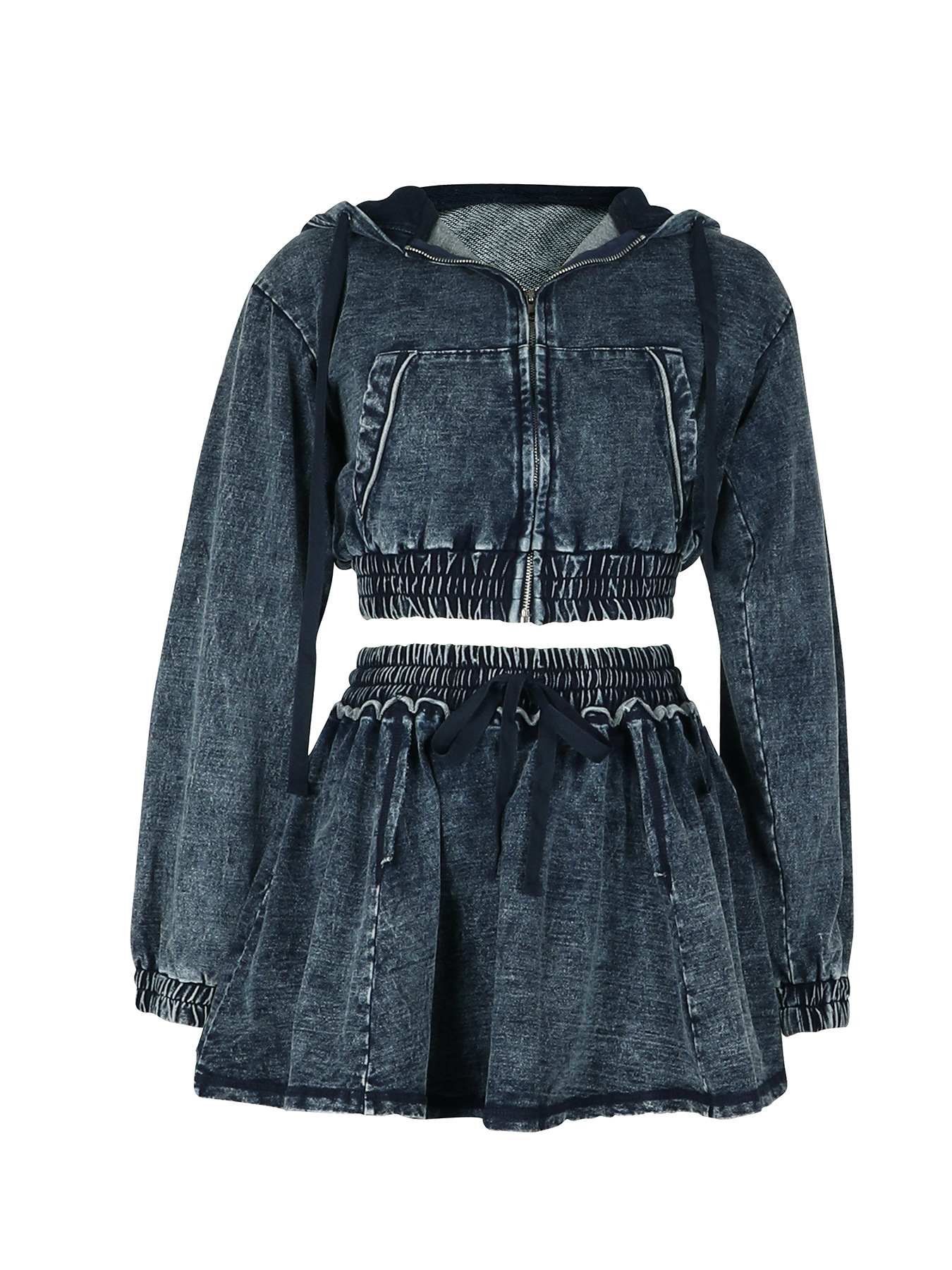 Turn heads with this stylish washed denim skirt and matching jacket set. Perfect for spring and autumn, this trendy two-piece offers a chic, sexy vibe for any casual outing or streetwear look.
