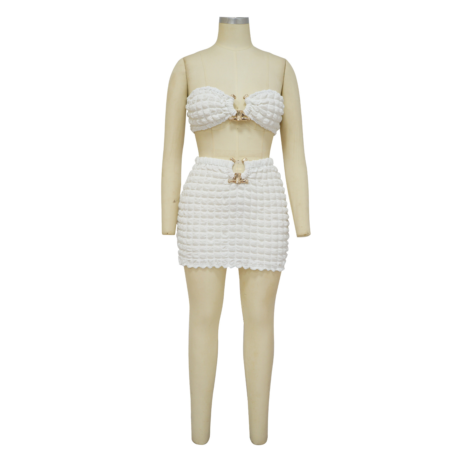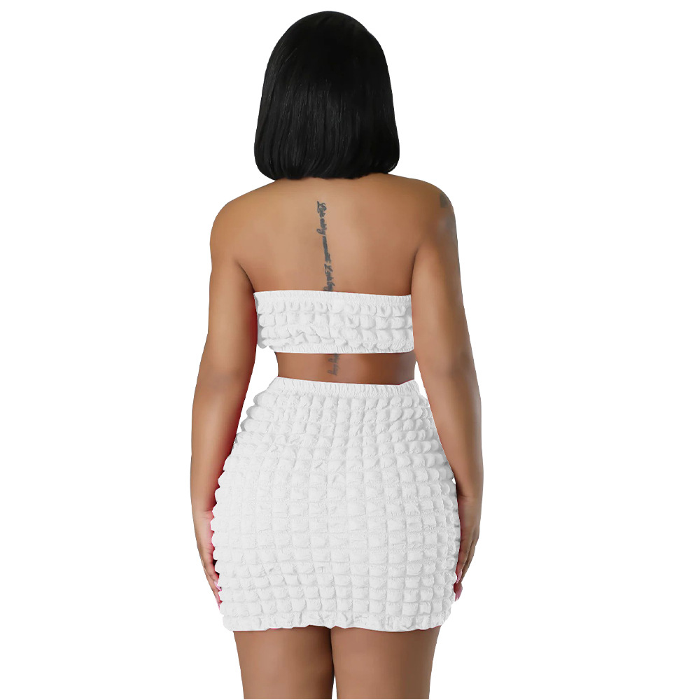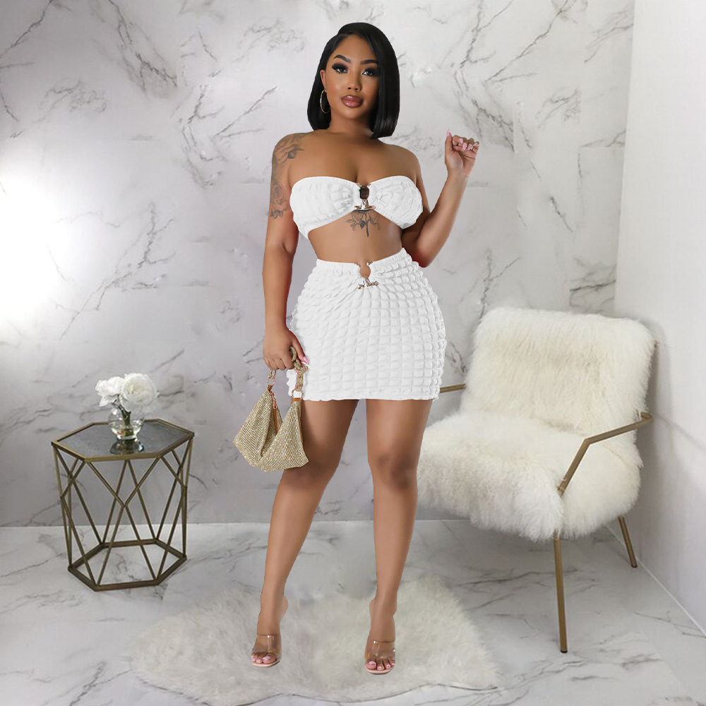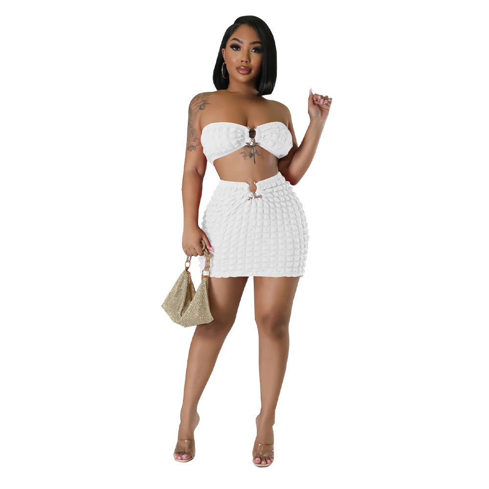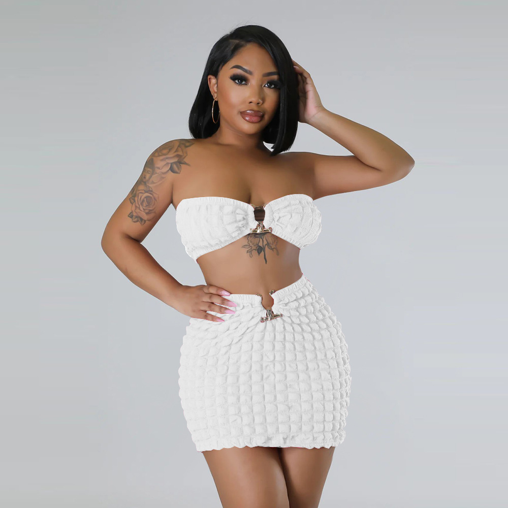 Turn up the heat in this flirty popcorn-textured set. Includes a figure-hugging crop top and short skirt for a bold, confident look you’ll love.