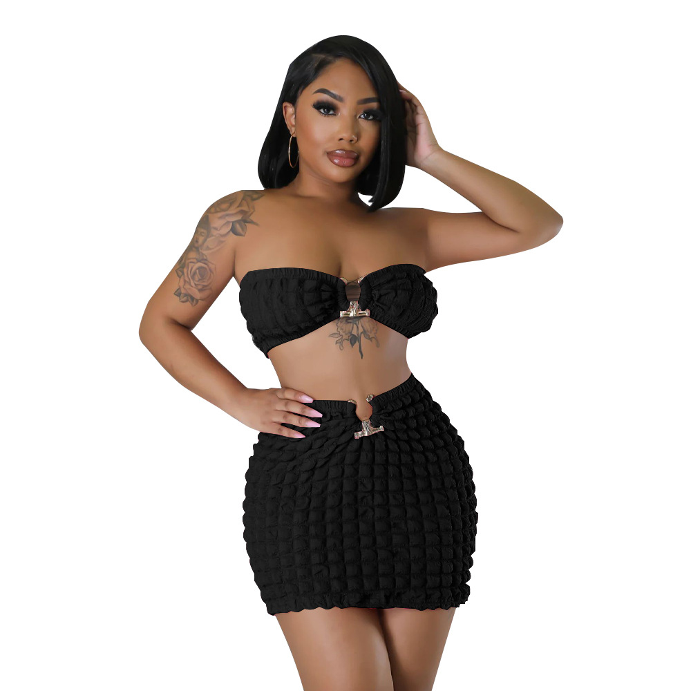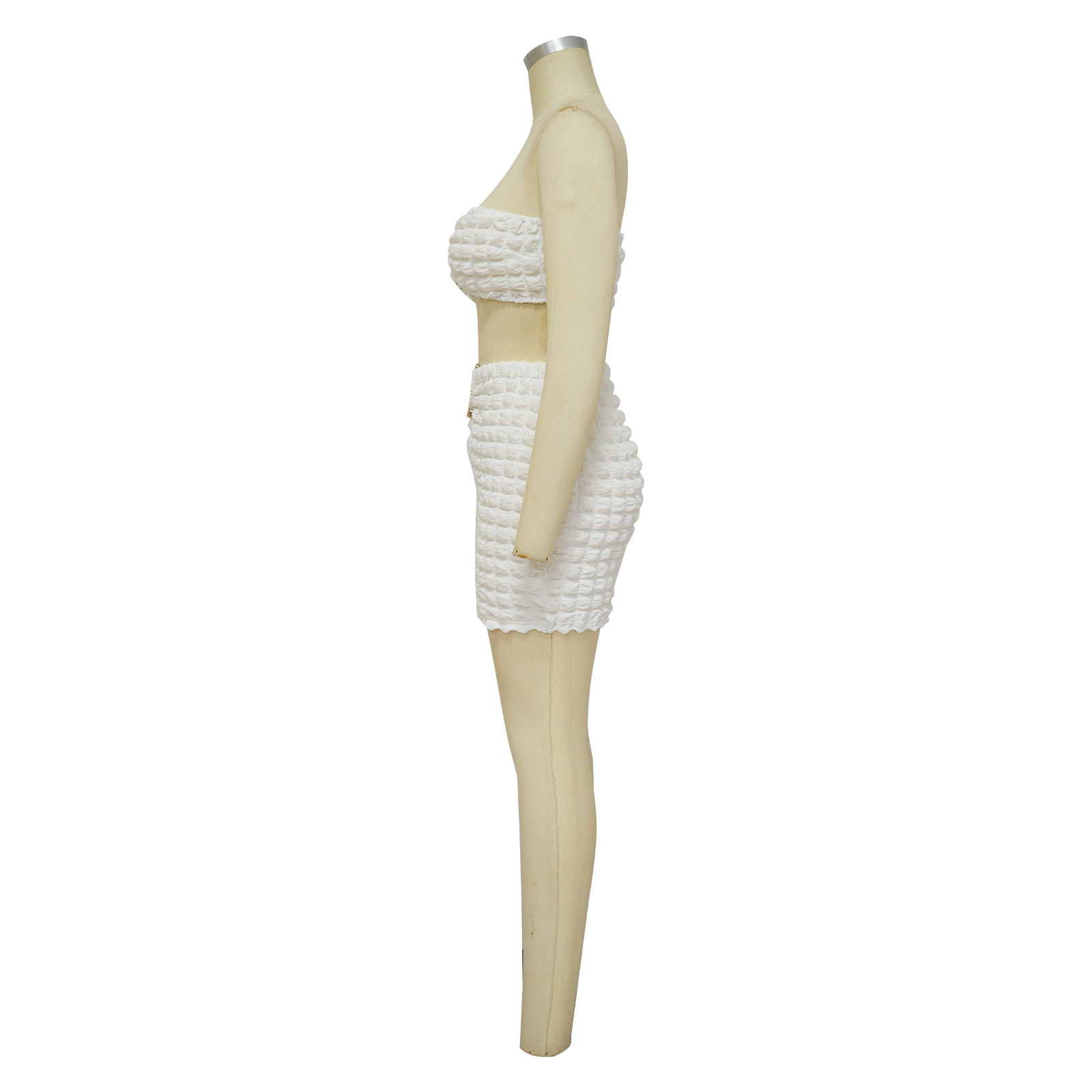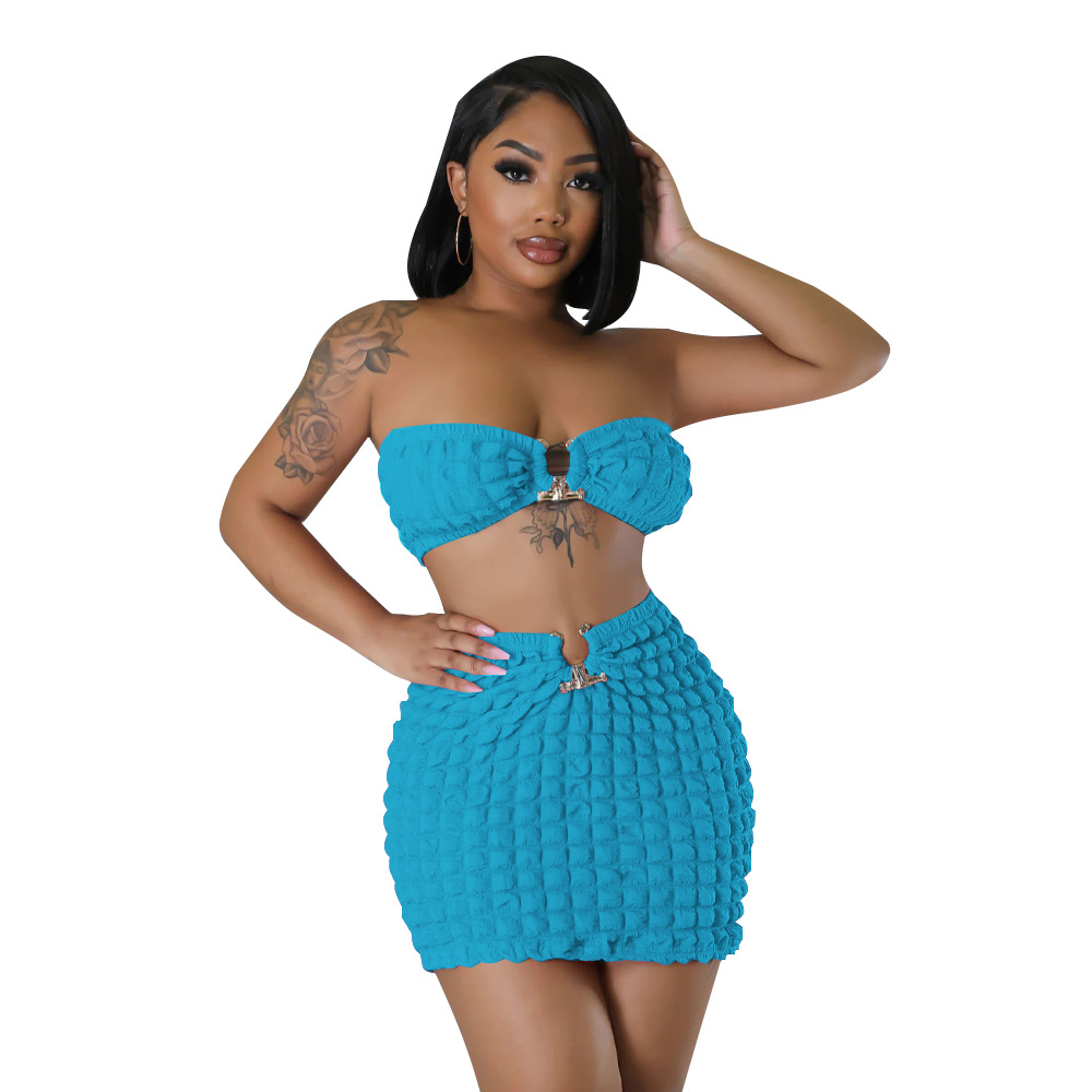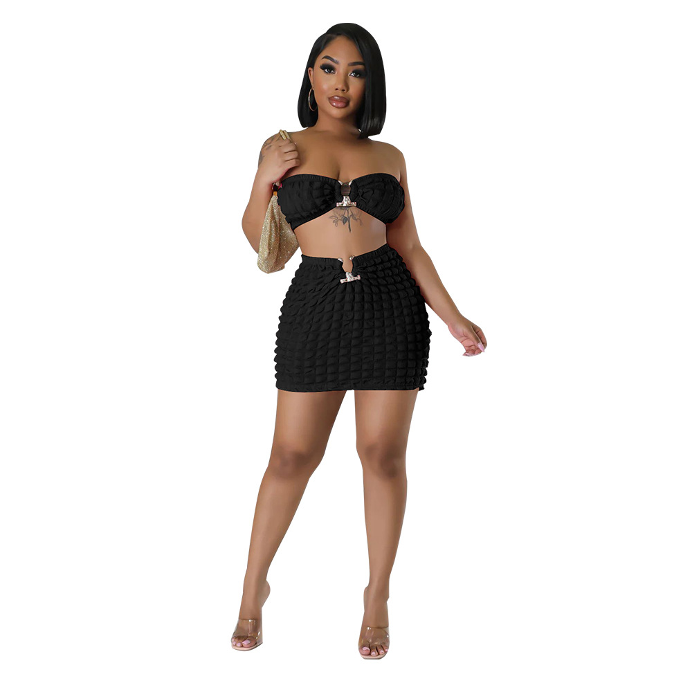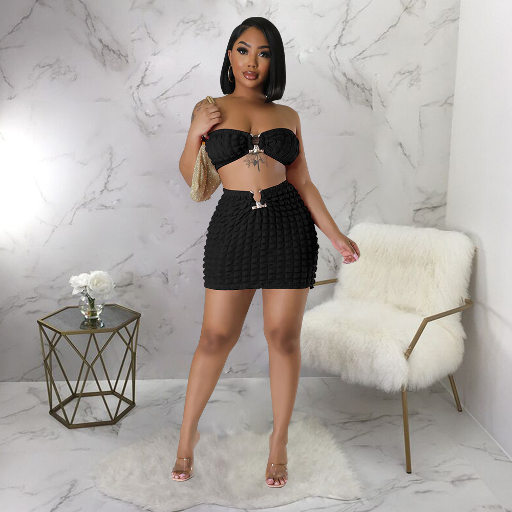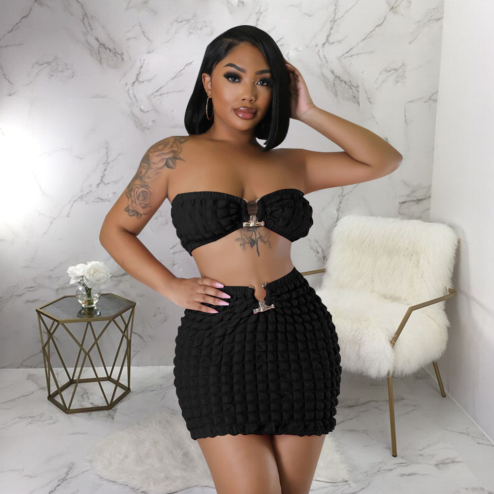 Turn up the heat in this flirty popcorn-textured set. Includes a figure-hugging crop top and short skirt for a bold, confident look you’ll love.