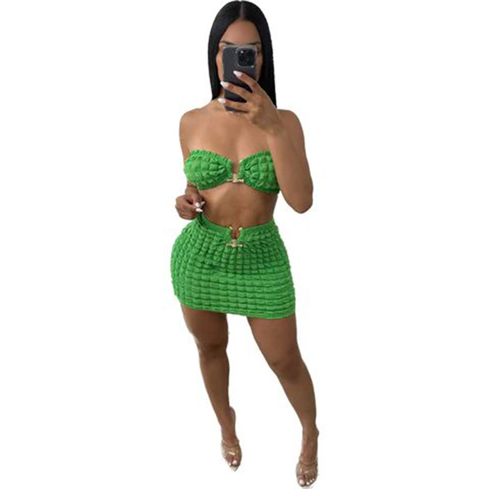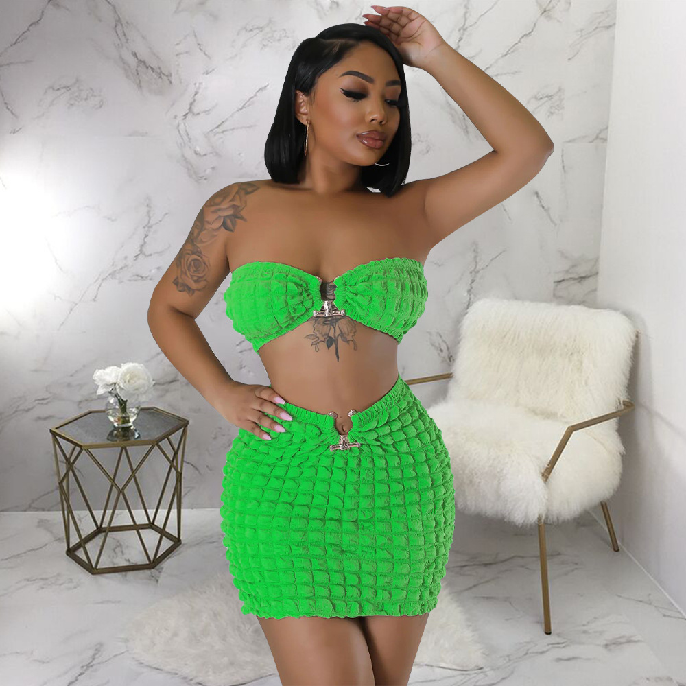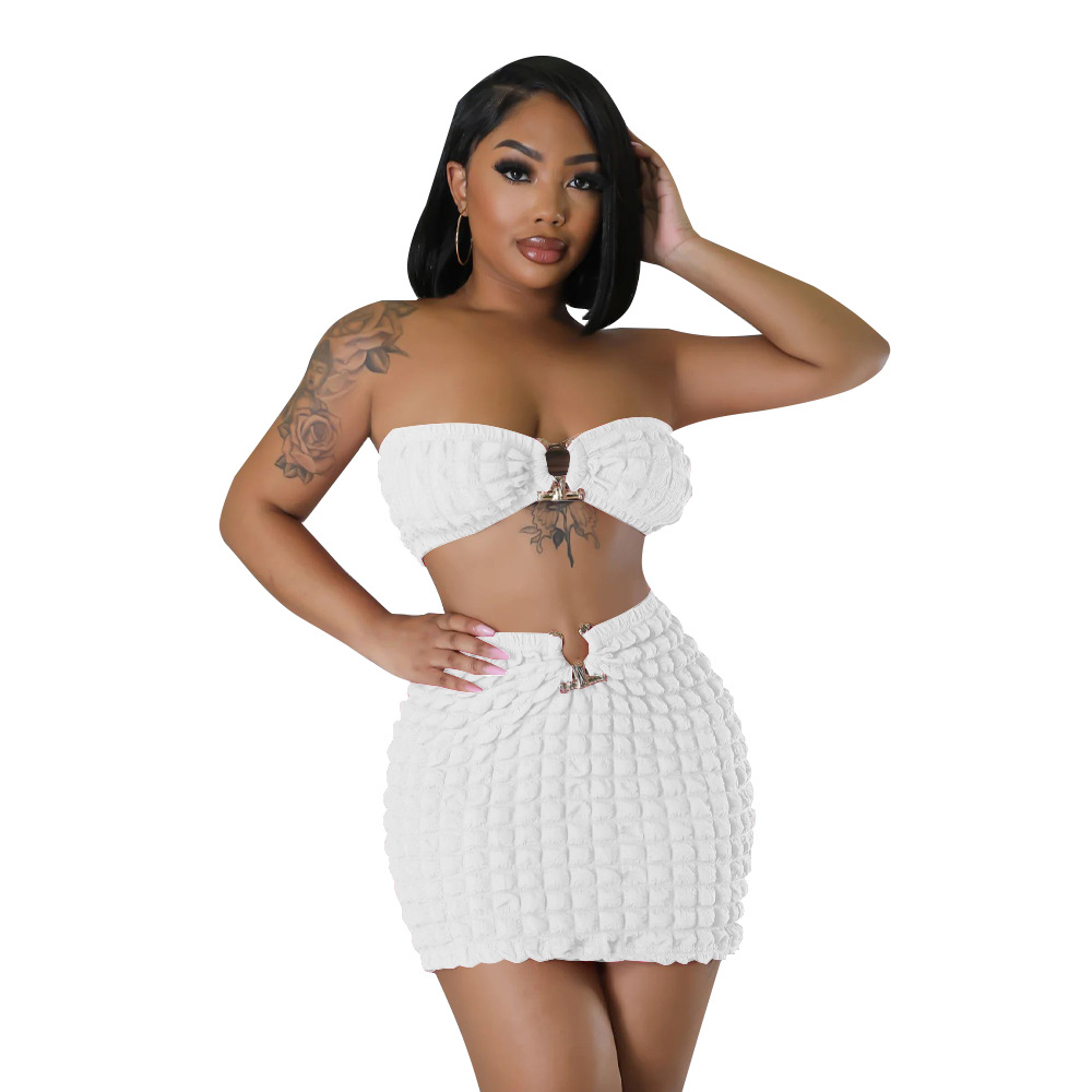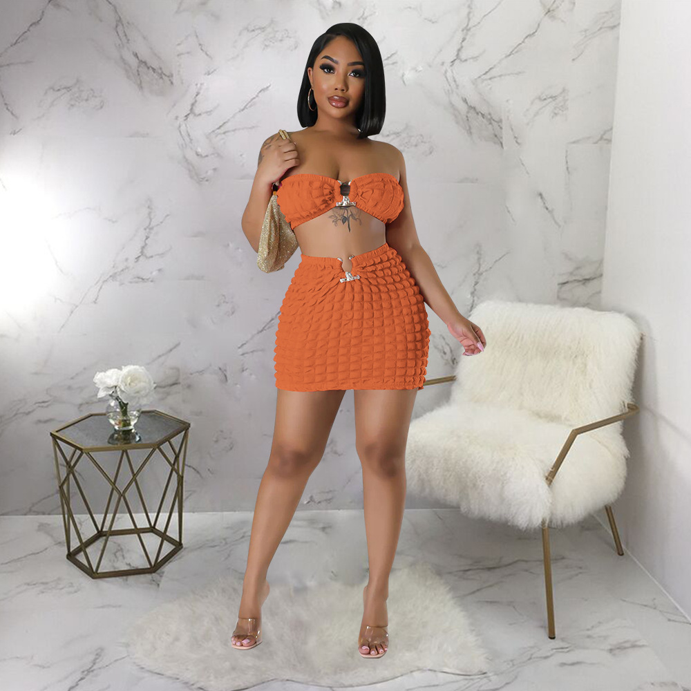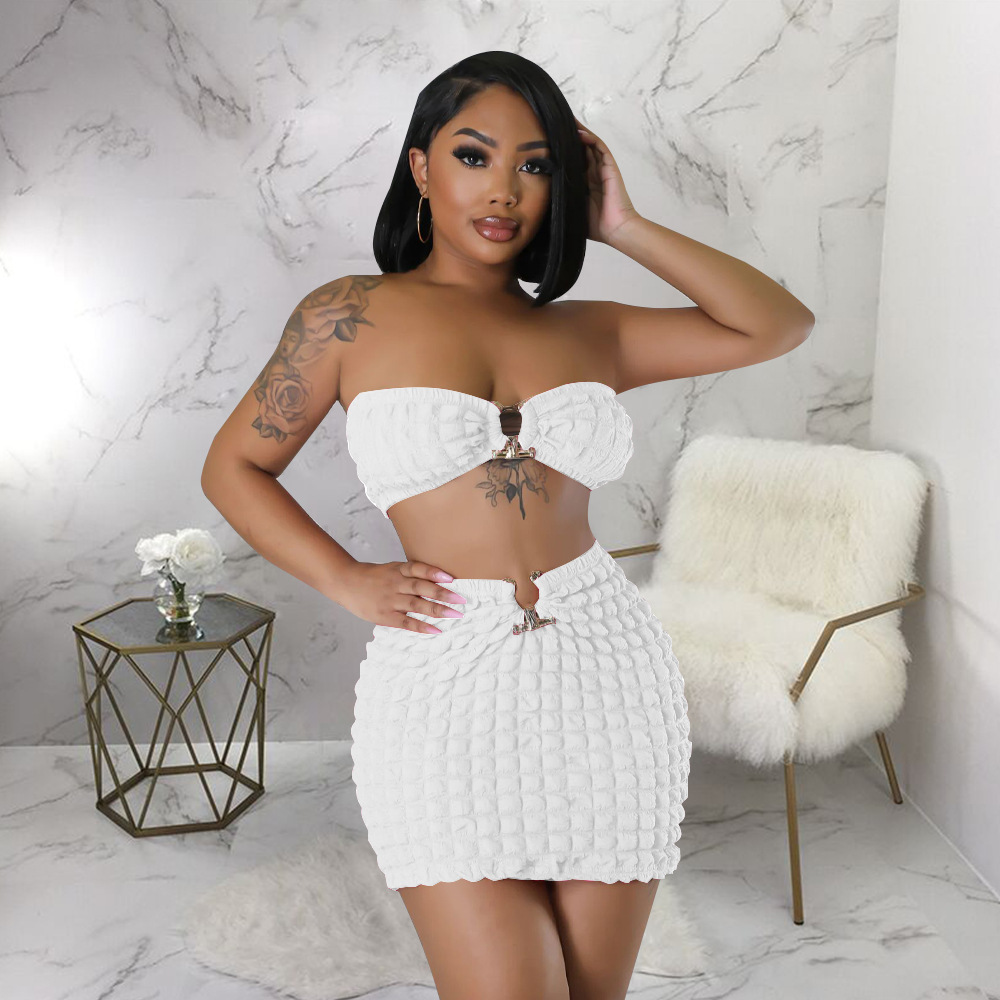 Turn up the heat in this flirty popcorn-textured set. Includes a figure-hugging crop top and short skirt for a bold, confident look you’ll love.